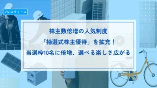 株式会社エプコは、人気の「抽選式株主優待制度」を大幅に拡充しました。当選枠が従来の5名から10名に倍増し、太陽光発電システムなどの省エネ設備やポータブル蓄電池といった防災に役立つアイテムを選べるカテゴリー制を導入。株主還元と持続可能な社会への貢献を目指します。