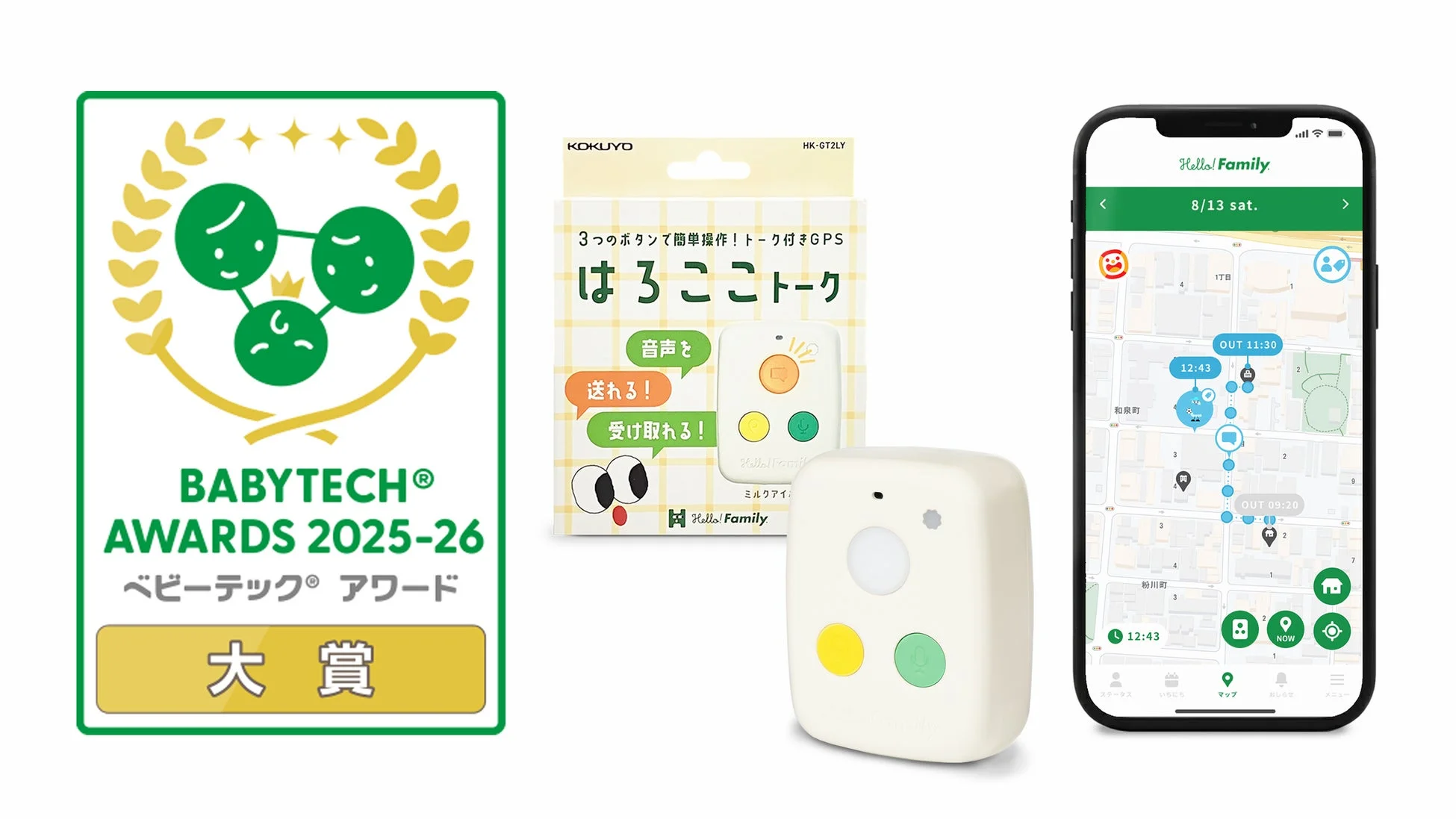 そんな想いに寄り添う、コクヨ株式会社の「Hello! Family.」ブランドから生まれた音声メッセージ機能付きGPS端末「はろここトーク」が、この度「BabyTech® Awards 2025-26」の“安全対策と見守り部門”で、見事大賞を受賞しました!
