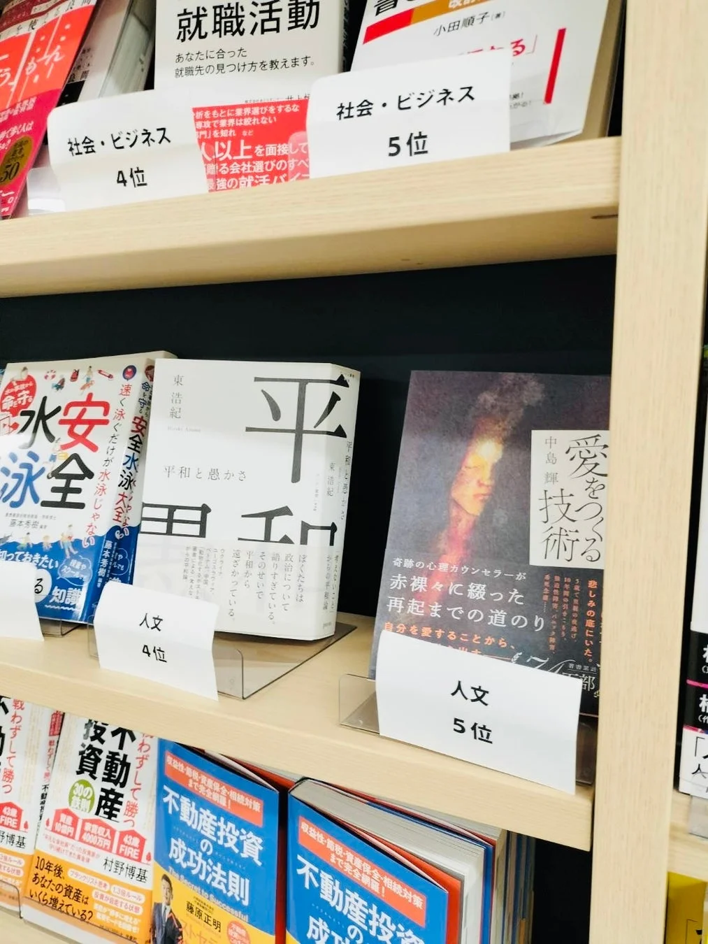 自己肯定感の第一人者として知られる心理カウンセラー、中島輝氏の著書『愛をつくる技術』が、紀伊國屋書店 新宿本店にて人文・文芸部門の週間ランキングで5位を獲得しました。