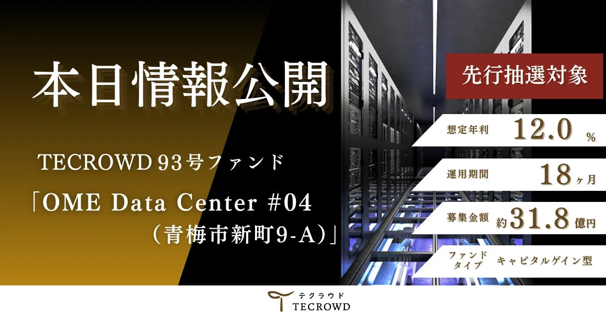 本日、2026年1月30日(金)に情報公開されたのは、国内キャピタルゲイン型ファンド「OME Data Center #04(青梅市新町9-A)」。AI推論に特化した次世代型エッジデータセンターという、今注目の分野への投資機会が提供されます。