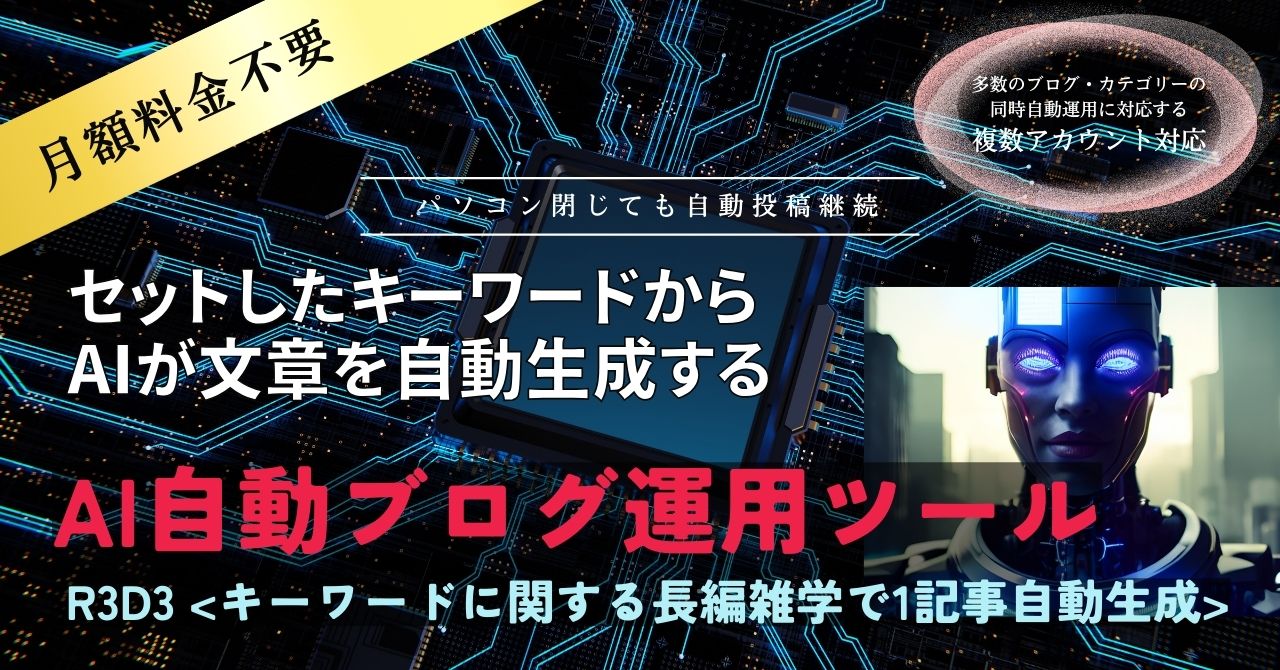 AI自動文章生成ブログ自動投稿ツール R3D3です。
