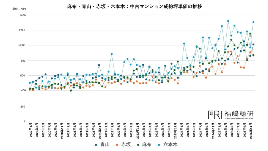 通常、このような価格差は大規模な再開発や利便性の向上といった明確な理由によって生まれますが、六本木では同時期に大きな開発は行われていません。むしろ、麻布では麻布台ヒルズが完成し、都市機能が大きく向上しています。にもかかわらず六本木が突出している点は、市場の構造を読み解く上で非常に興味深いと言えます。