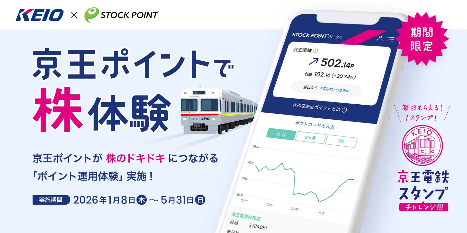 京王電鉄とSTOCK POINT株式会社が協力し、京王ポイントを活用した「ポイント運用体験」の実証実験を2026年1月8日(木)から5月31日(日)まで実施します。これは京王ポイントの新たな交換先として、ユーザーが「株のドキドキ」を日常のポイントで感じられる画期的な取り組みです。
