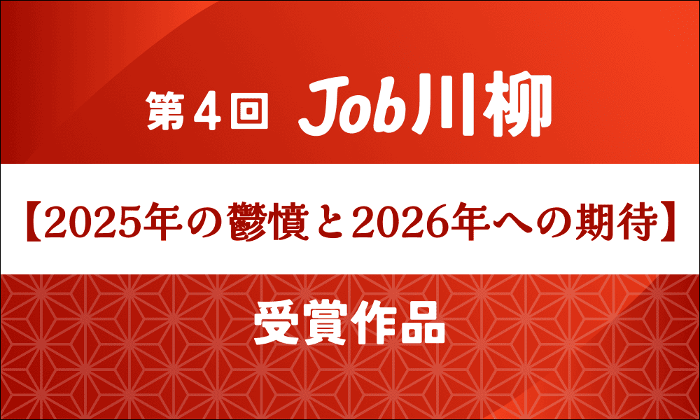 「第4回 Job川柳」の受賞作品は、物価高や実質賃金への不安、資産形成への意識変化、AIの急速な普及、働き方の再調整など、2025年の社会情勢と社会人のリアルな感情を鮮やかに表現しています。同時に、そうした厳しさの中でも「心の豊かさ」や「前向きなキャリア意識」、「社会の変化を自分ごととして捉える姿勢」といった、2026年への希望や期待が読み取れる結果となりました。