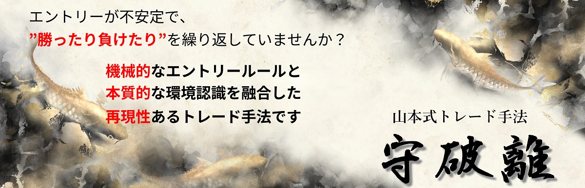 山本式トレード手法『守破離』は、FX・株式トレードにおいて 相場分析からエントリー、利確・損切までの一連の流れを体系的に学べる教材です。