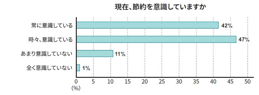 調査では、「常に意識している」が42%、「時々、意識している」が47%となり、合わせて約9割の方が節約を意識していることが明らかになりました。特に、直近1年間で価格が上がったと感じるもの、そして実際に節約しているものとして、「食料品」と「外食」が上位に挙がっています。日々の食事は生活に欠かせない部分だからこそ、物価上昇の影響を強く感じ、節約の対象となっているのかもしれません。