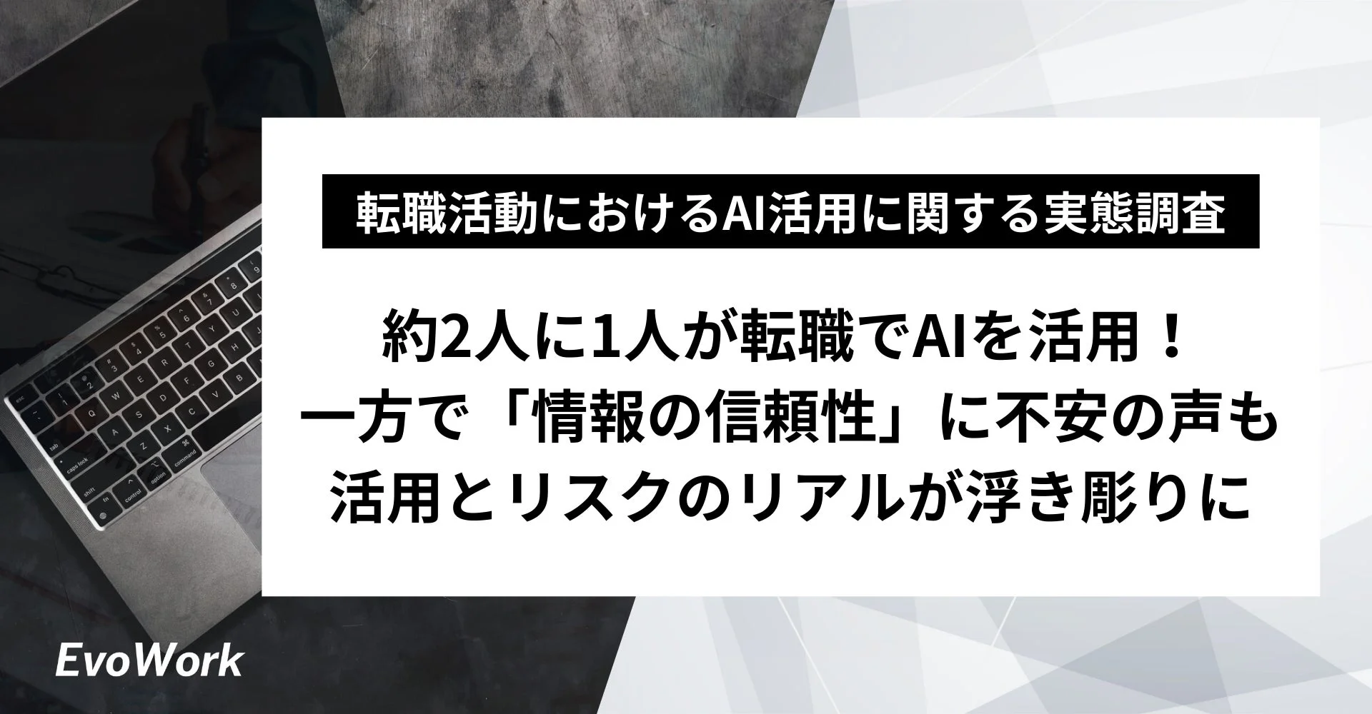 AIの進化が目覚ましい昨今、私たちの日常生活だけでなく、キャリア形成においてもその存在感を増しています。転職という人生の大きな転機において、AIはどのように活用され、どんな影響を与えているのでしょうか。今回は、過去2年以内に転職活動を行った方を対象にした「EvoWork」の調査結果から、AI活用のリアルを見ていきましょう。