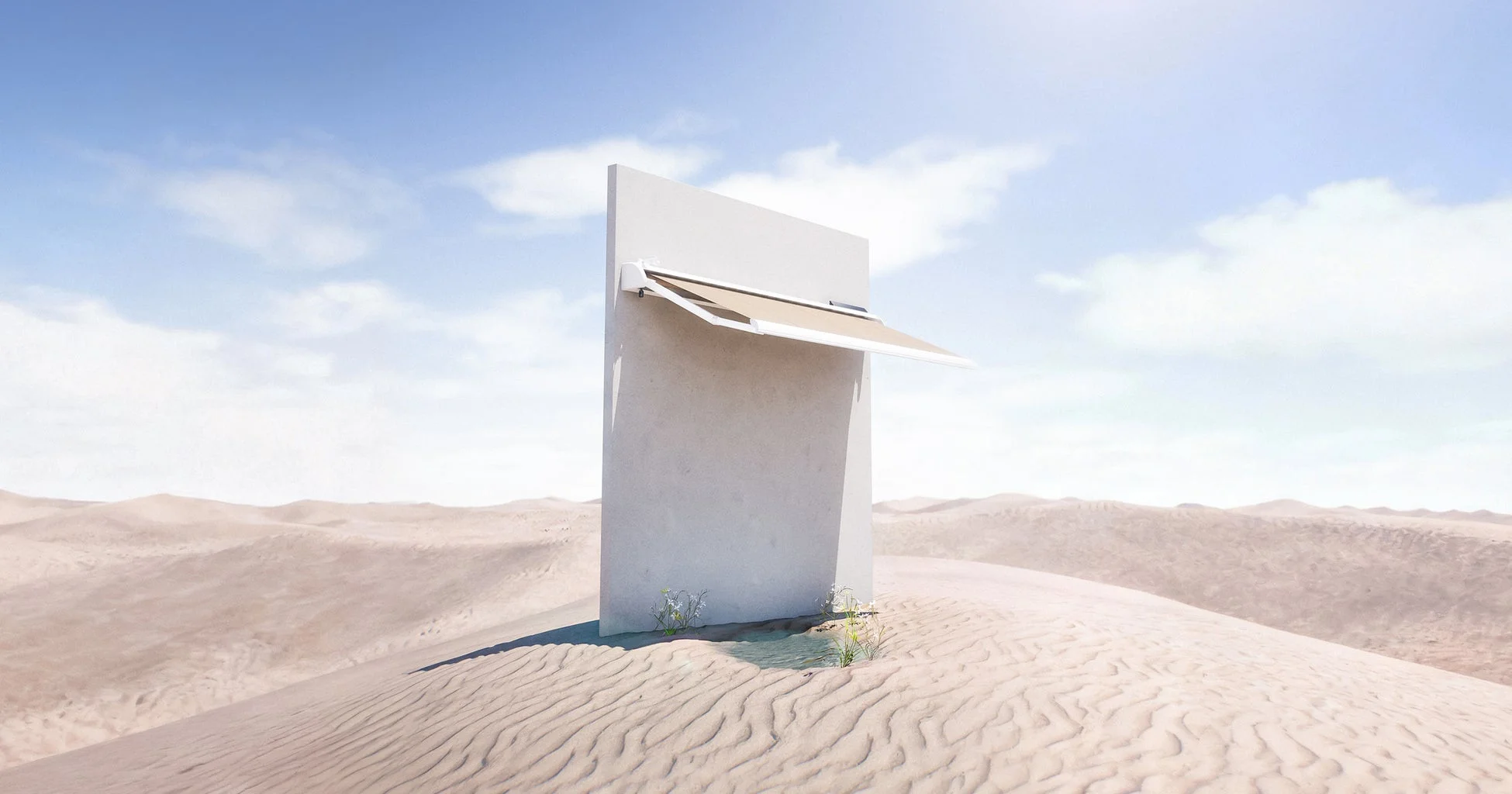 「SolEle」は、日射量や風の強さを自動で検知して、オーニングの開閉を最適な状態に保つスマートなユニットです。日差しが強い時は屋内の温度上昇を抑え、強風時は安全のために自動で収納されるので、安心して使えます。