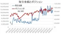 金融先物取引業協会の「店頭FX月次速報」をもとに作成された図1.取引金額とポジション計を見ると、取引金額とポジション計の推移が分かります。