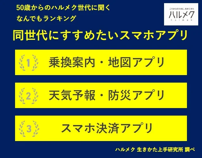 ハルメク世代が選ぶ!スマホアプリランキングTOP3