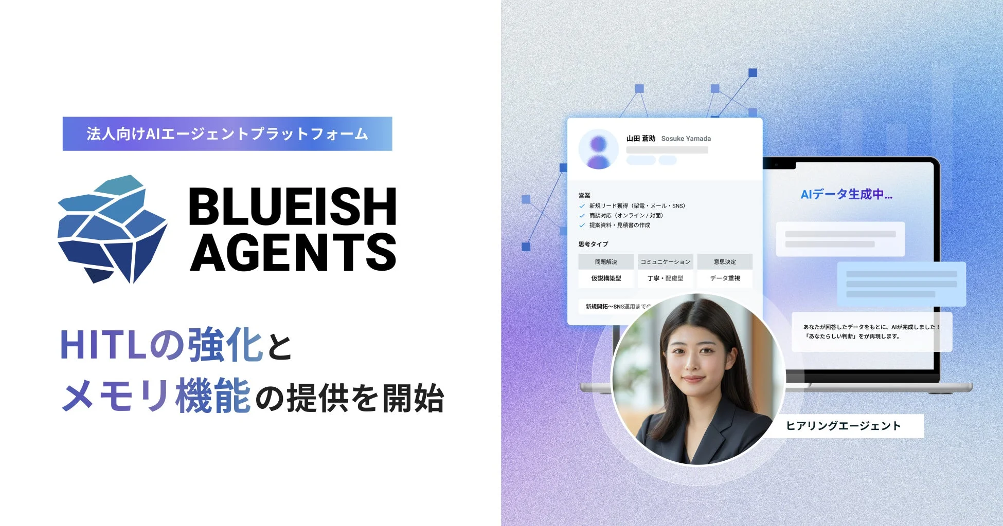 そんな構造的な課題を解決するため、『BLUEISH Agents』は、HITL(Human-in-the-Loop)機能の大幅強化と、待望のメモリ機能を正式に提供開始しました。