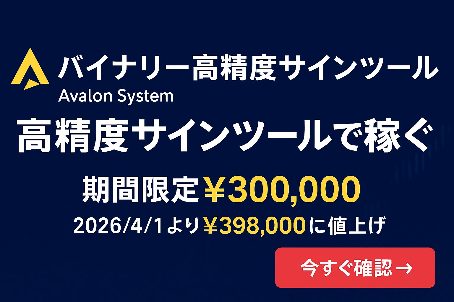 Avalon S+Mセットは、短期(S)+中期(M)を同時に攻略できるバイナリーオプション専用ツールです。 1分〜5分取引を完全にカバーする設計で、単品購入よりも28,000円お得なセット商品として提供されています。