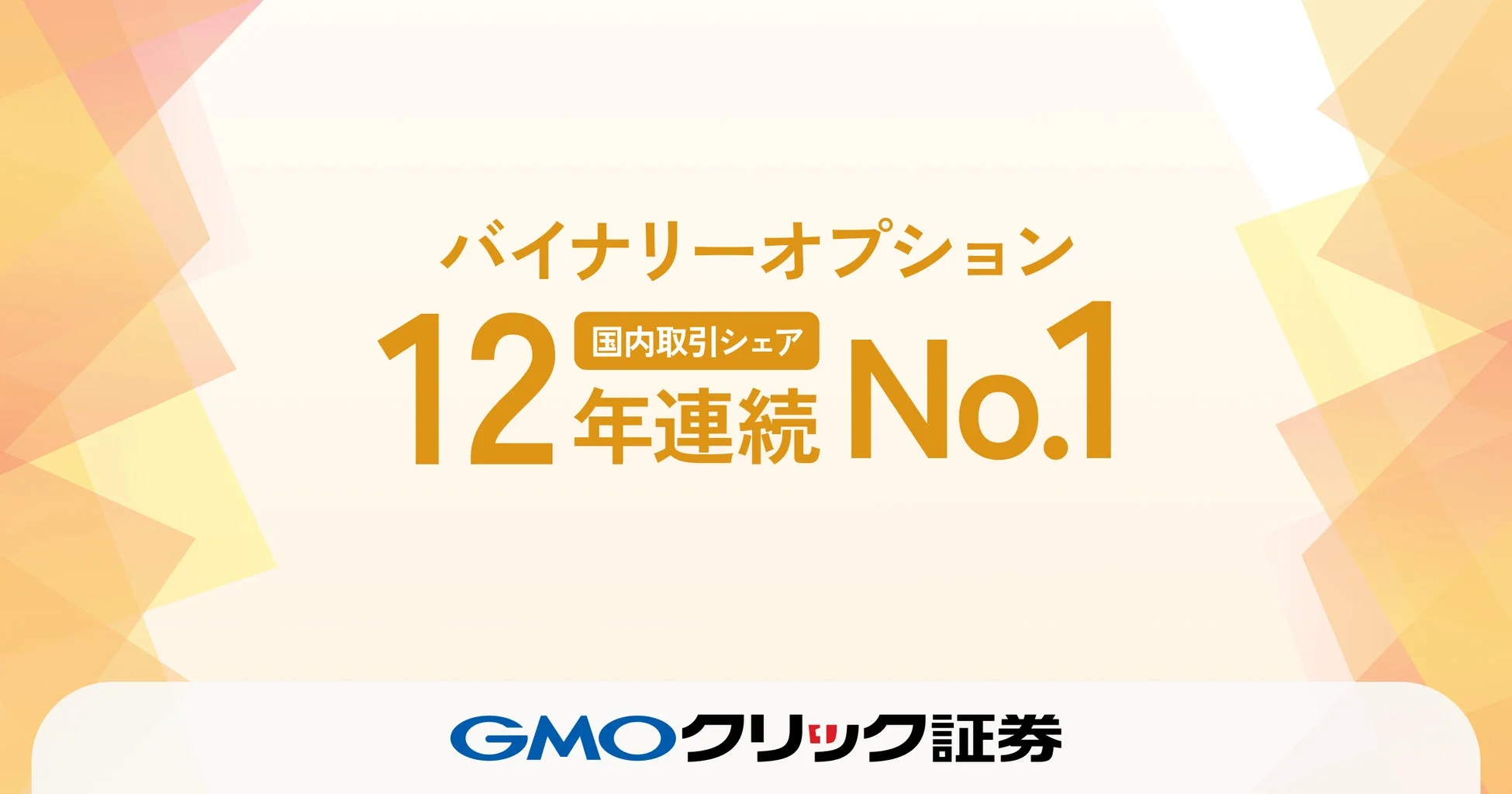 GMOクリック証券のバイナリーオプションが、なんと12年連続で国内取引シェアNo.1(※)を獲得しました!この素晴らしい実績は、多くの方がGMOクリック証券のサービスを選び、信頼している証拠と言えるでしょう。